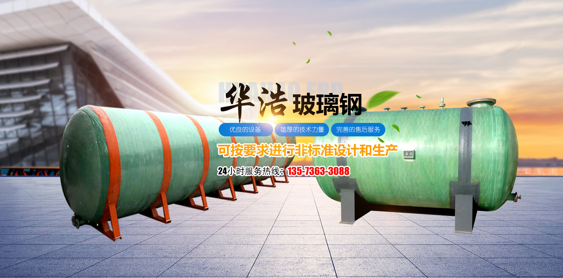 山東華浩玻璃鋼有限公司,位于世界風(fēng)箏都濰坊市南三十公里處,是生產(chǎn)各種玻璃鋼制品的專業(yè)公司。   華浩玻璃鋼生產(chǎn)各種立式、臥式玻璃鋼罐、玻璃鋼儲(chǔ)罐、玻璃鋼運(yùn)輸罐、標(biāo)準(zhǔn)運(yùn)輸罐、玻璃鋼鹽酸罐、化學(xué)反應(yīng)罐、真空壓力罐、設(shè)備罐、復(fù)合罐、玻璃鋼儲(chǔ)槽、大型玻璃鋼容器;玻璃鋼化糞池;各種型號(hào)的橫流式、逆流式(圓形、方形)玻璃鋼冷卻塔;機(jī)械纏繞玻璃鋼管道、管件、壓力管道,有機(jī)、無(wú)機(jī)通風(fēng)管道、空調(diào)管道;漂液洗鼓、耐腐耐高溫反應(yīng)釜、印染布車、組合式玻璃鋼水箱、玻璃鋼風(fēng)機(jī)、玻璃鋼不定型工藝品等二百多個(gè)品種。